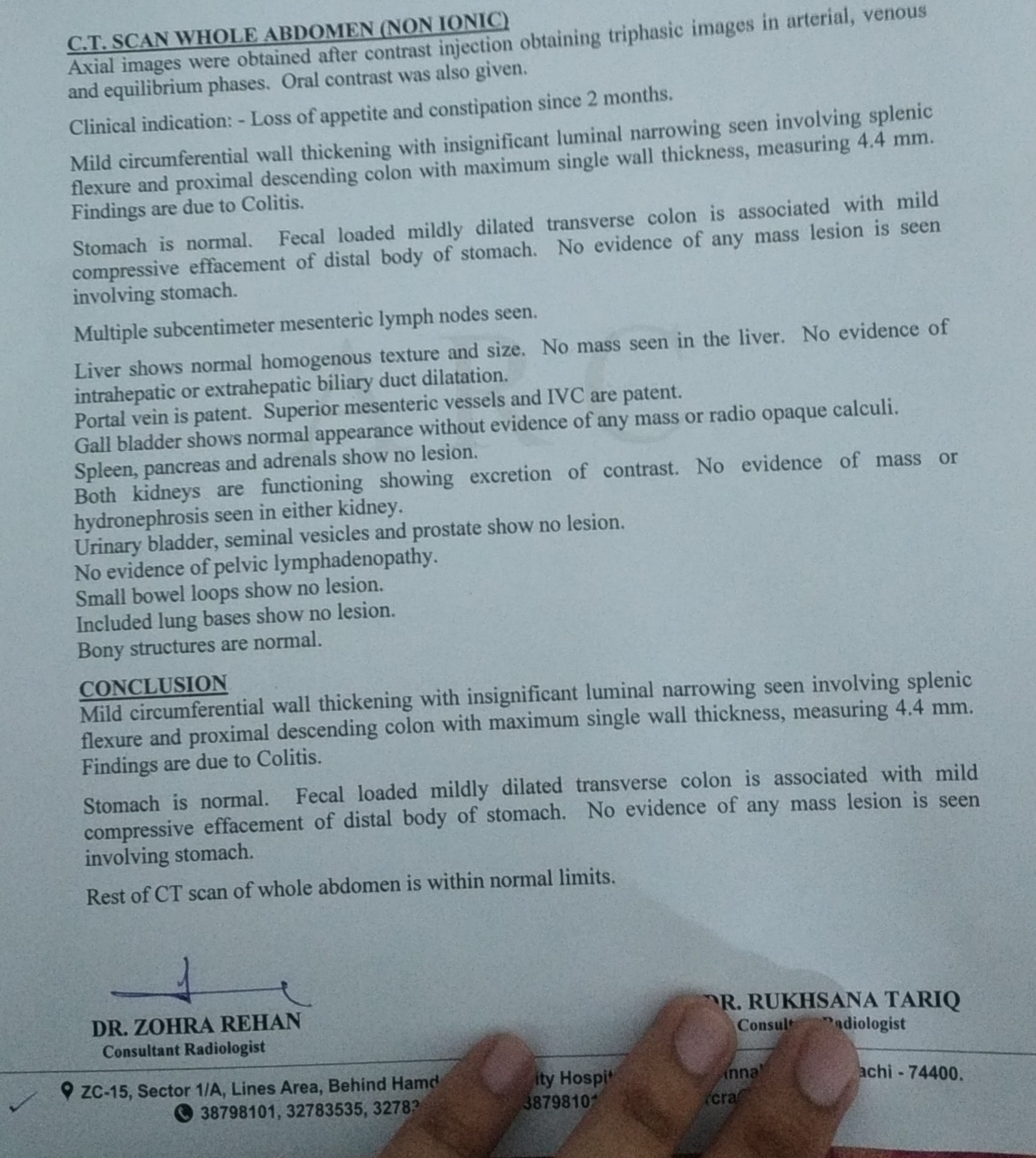 Needs to review Ct scan films if in Karachi visit liaquat national hospital and see Dr.Nadeem KHURSHAIDI general surgeon