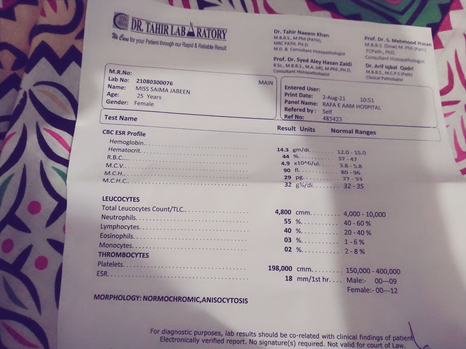 Ye report hai cbc ki,,lakin mera fever ab barh gya hai 101 tak gya hai aj fever 4 ghanty bd charh jata hai bukhar weakness bht hai aur vomitting ka dil bhi chahata hai sar bhi chakrata hai meray galay mei b dard hai aur jb fever hota hai tw mujy halki sardi bhi lagti hai ..