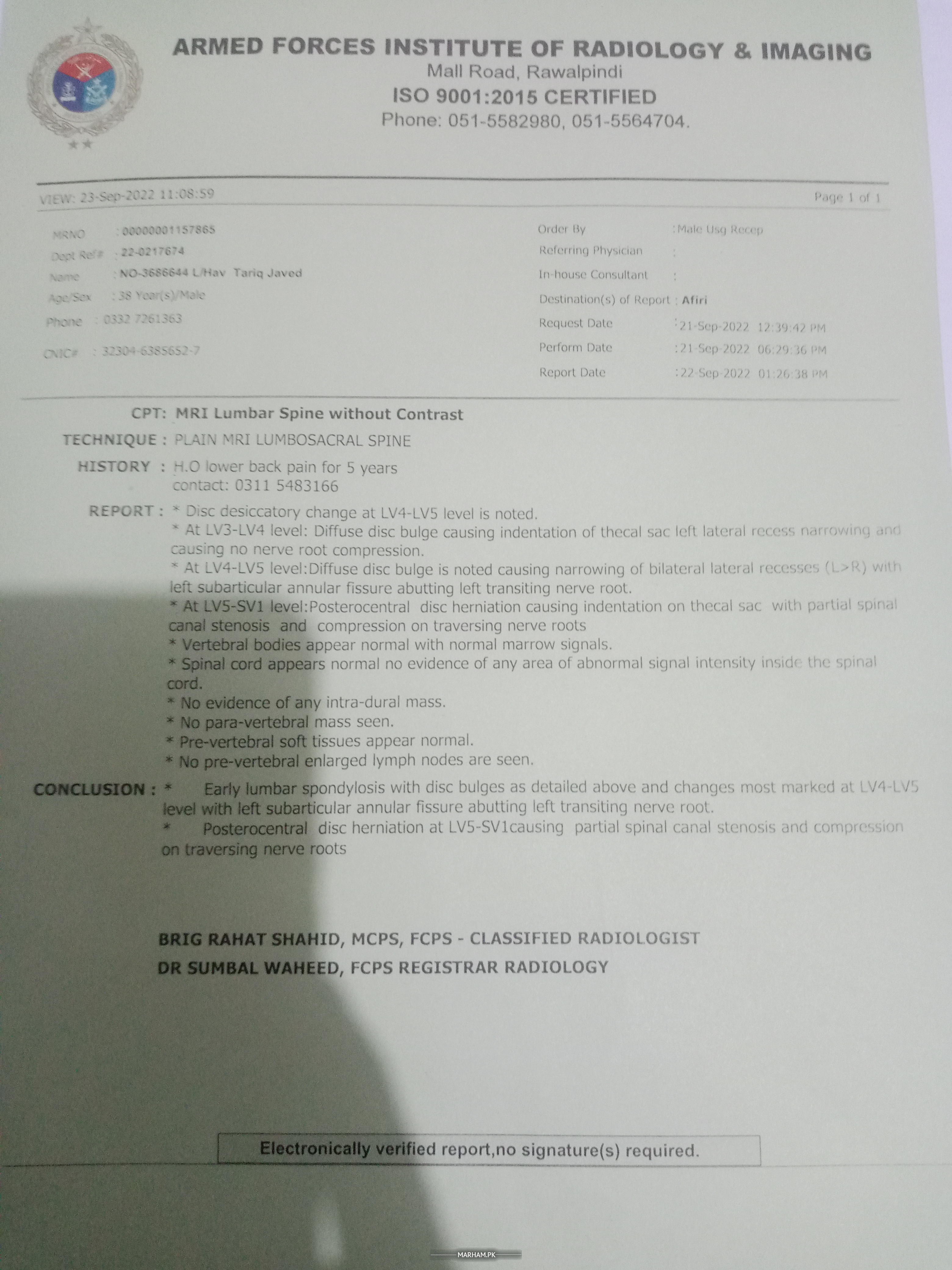 AOA dear doctors mujhe taqreeban 5 -6 sal se kamer me pain he Lekin me ne kabhe cheak up nahe Karaya ab walli ball khelne se pain hova he to me ne MRI karai plz help me es me kia problem he
