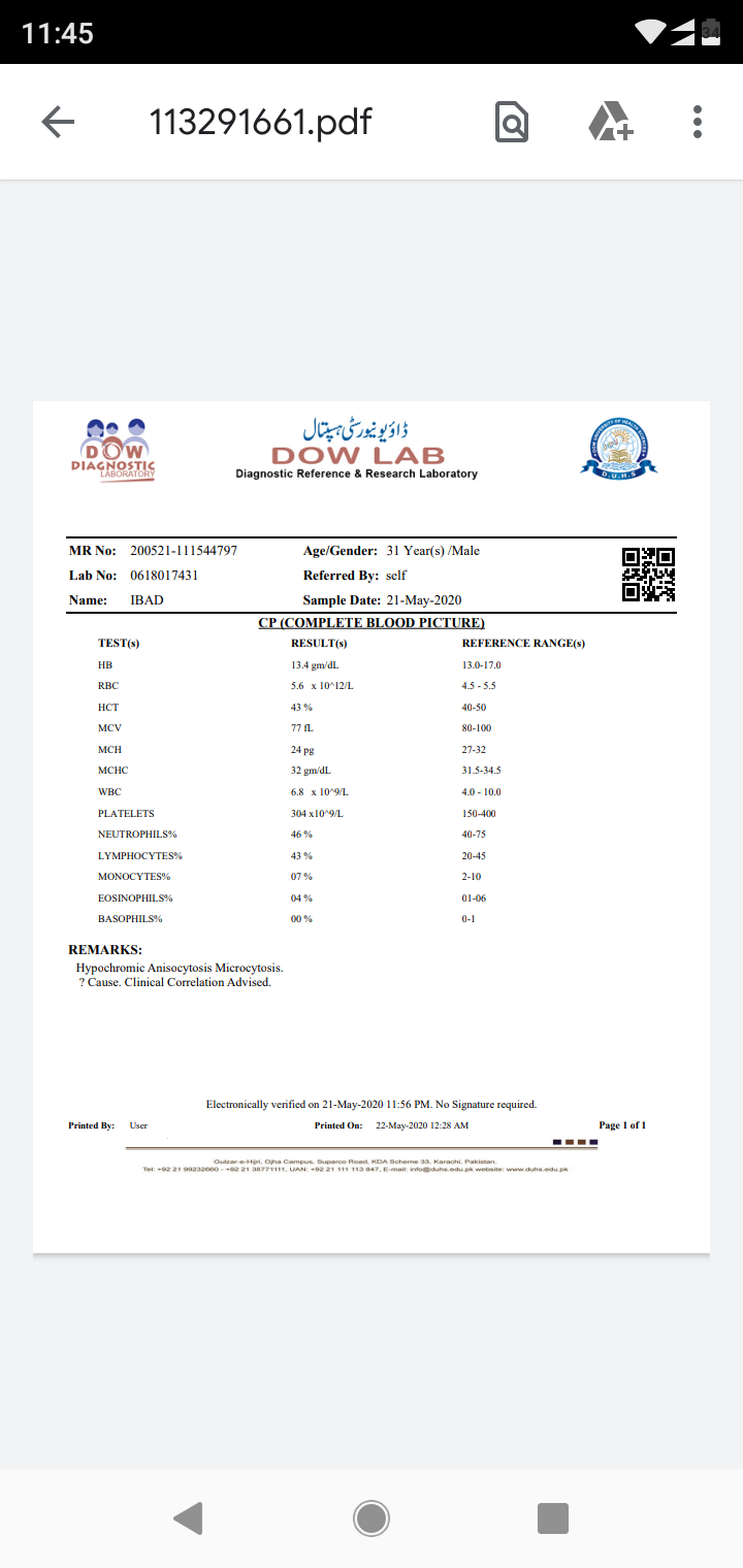 Thanks for the detailed reply. It’s great that u have improved 75%. ur Vit D level is 20 and u will need to take atleast 4 injections at an interval of 15 days (mixed in full cream milk, not with water). For IDA, u can take tab Ibret folic (once a day after breakfast), but it’s important to know the cause of IDA. It’s always more important to treat the cause, not only the symptoms. For that u may book an online that helps, stay home stay safe.