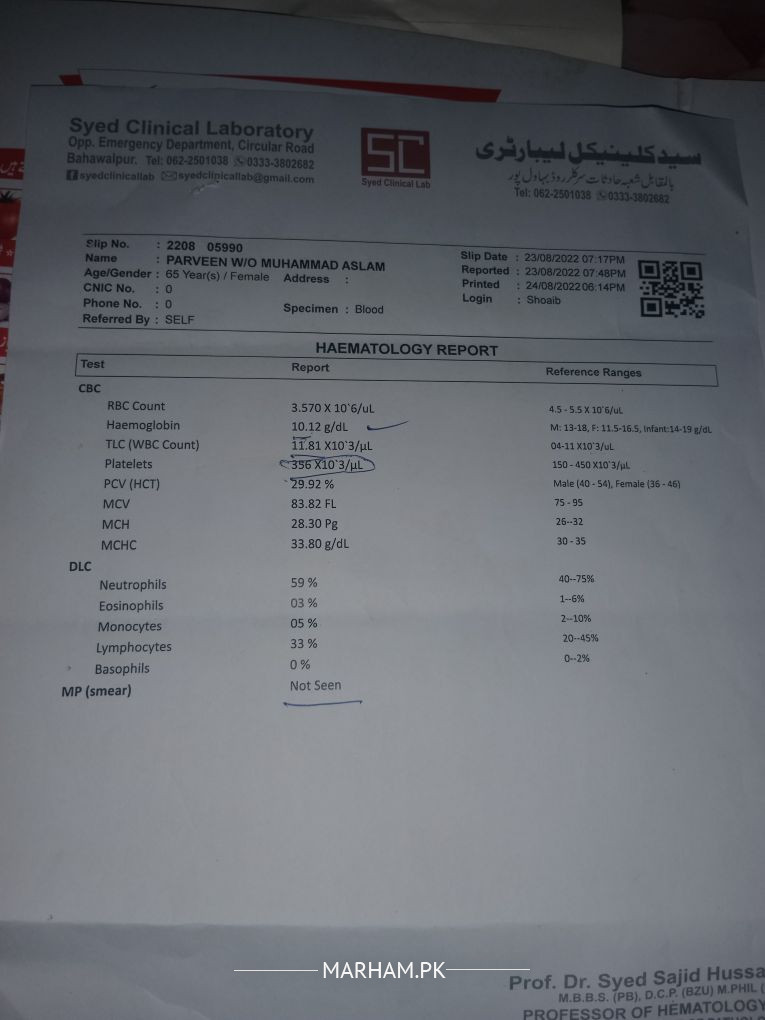 just CBC is not enough need to be visited by a specialist physician soon after taking history and doing physical examination and some tests then everything will be cleared up