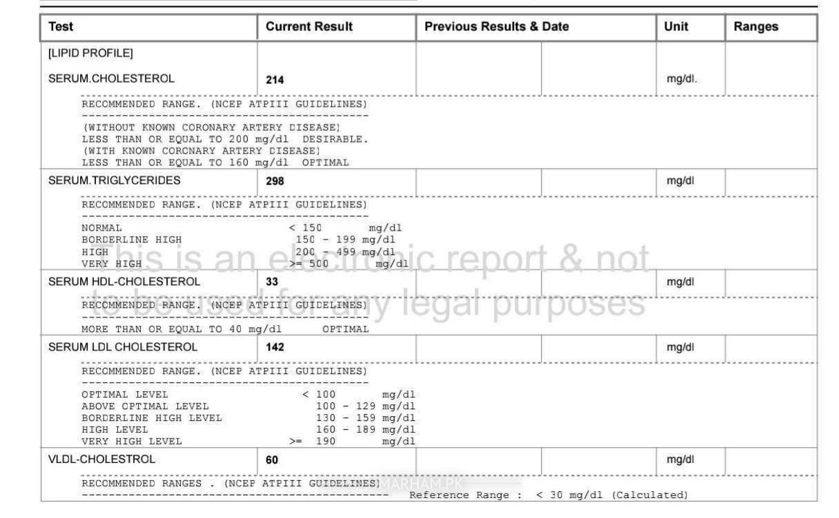 Kindly lower your dietary cholesterol level and even carbohydrate level. Do exercises Tell me what is your height weight and waist circumference??