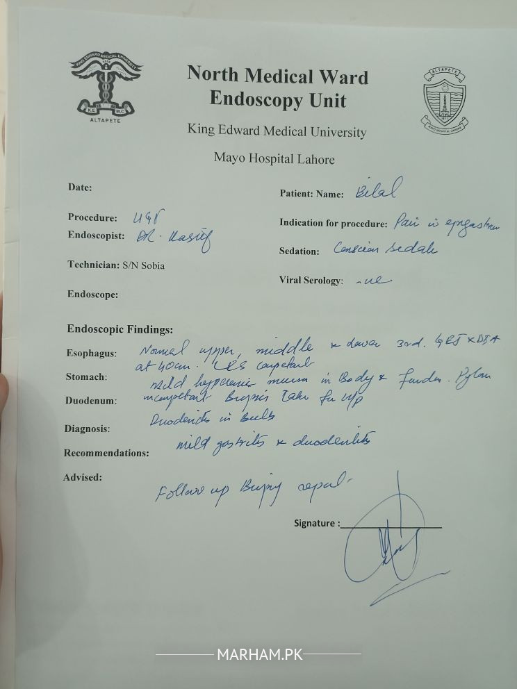 please check my endoscopy report and biopsy report. Any issue please check kr k bta dein