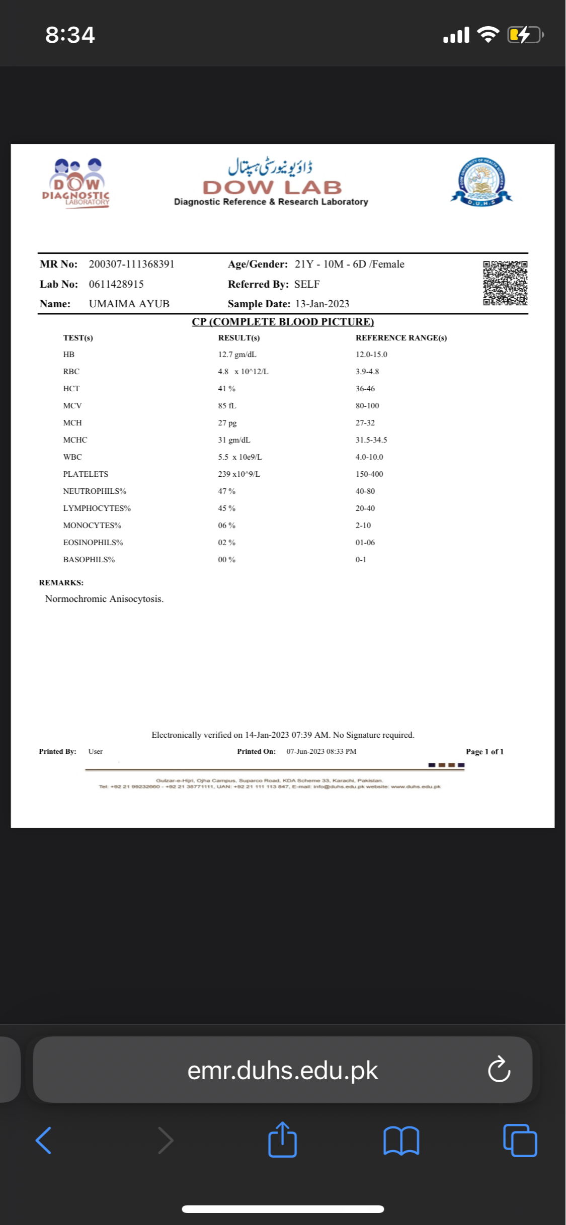 Asking for Self, Female, 22 years old, Karachi