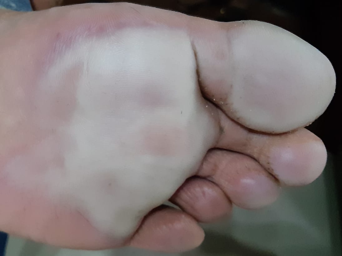 My husband's feet are getting worse day by day and they stinks so bad... he is facing this issue from past 2 weeks and his feet and hands sweat alot even in winters.. pictures are attached please suggest what should I do?