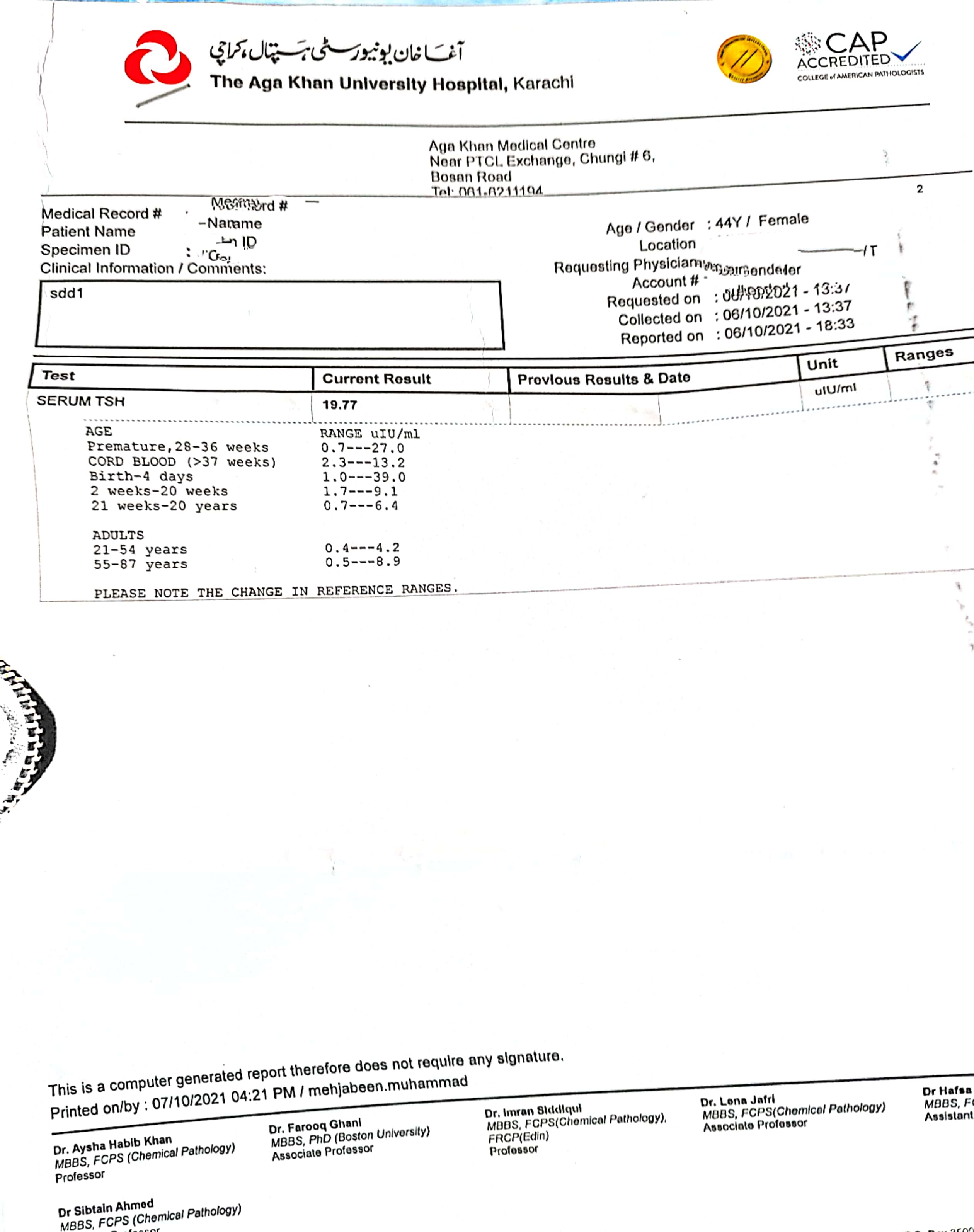 Asking for Self, Female, 44 years old, multan