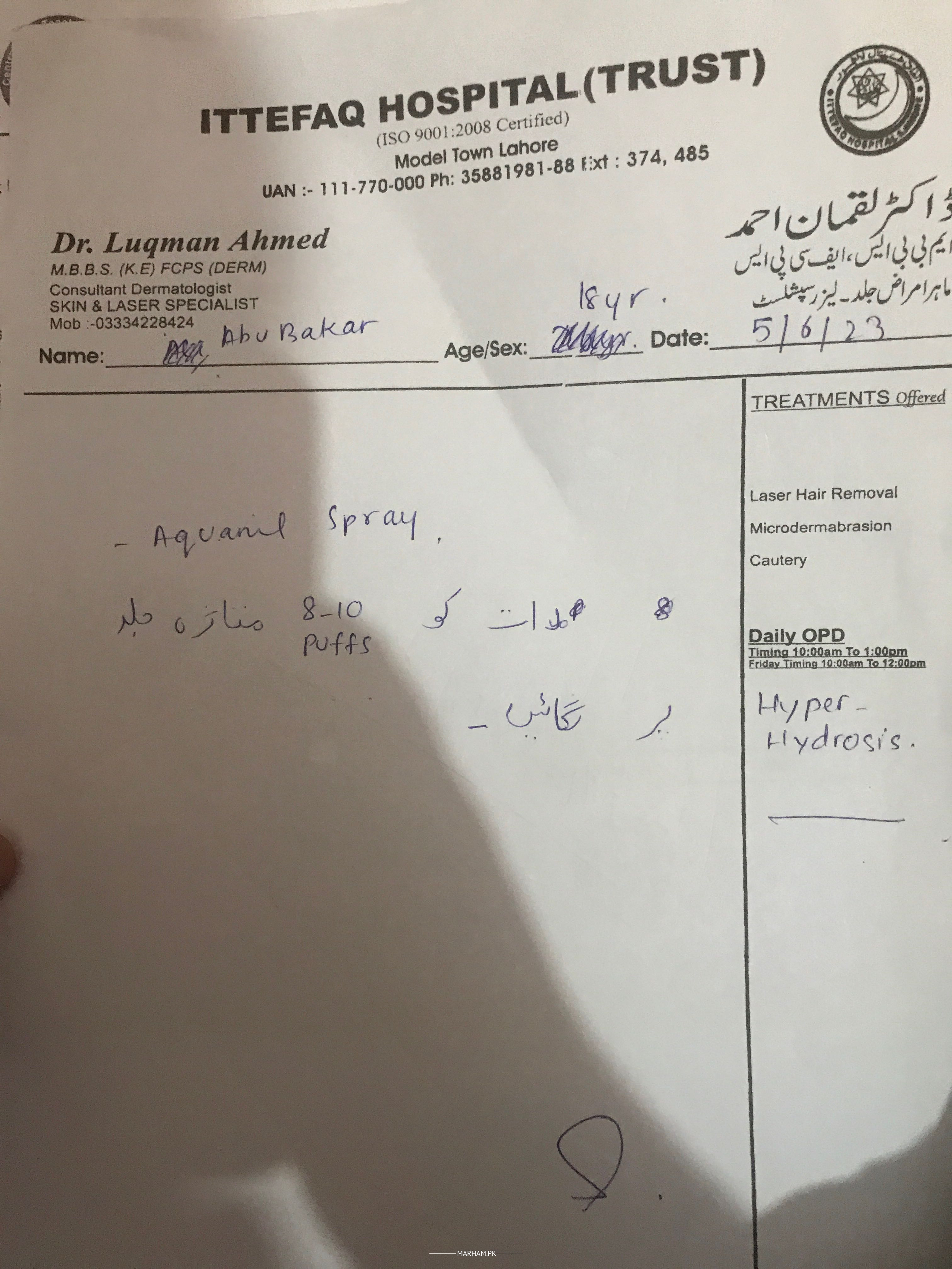 I am suffering from Hyperhidrosis from childhood. I use solutions like Aluminium Cloride Hexa Hydrate . I also take medicine. My tharoid test is normal. Now i want permanent treatment like surgery etc .