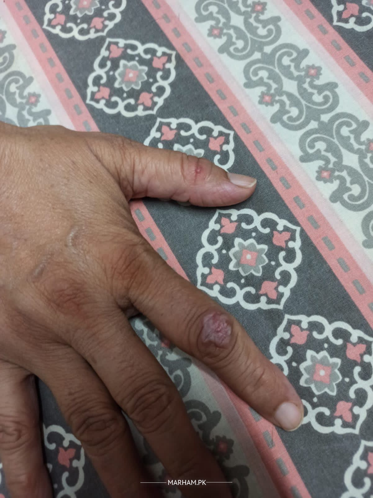Pus filled lesions have appeared on one knuckle and after it healed by using antibiotic medicine, another has appeared. Followed by extreme pain in body and joints. No fever. Have taken amoxcil and brufen. Patient has history of diabetes and hypertension.