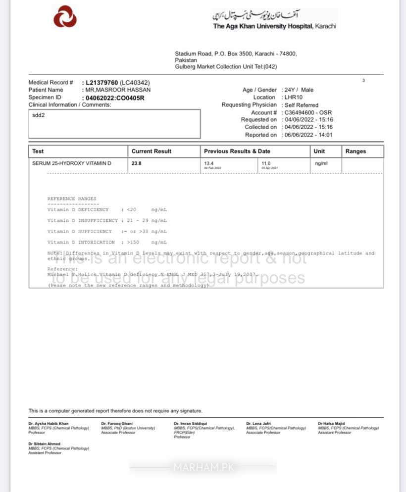 vitamin D ki kami hy aur cholesterol barha hua hua hy..