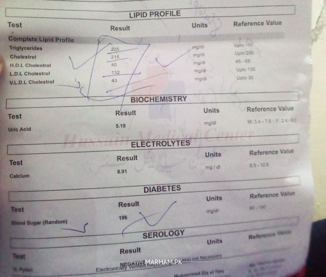 Triglycerides thory say raise hain. Baqi almost normal ha. Aap oily cheezain na khain. 15 din k baad repeat krain report
