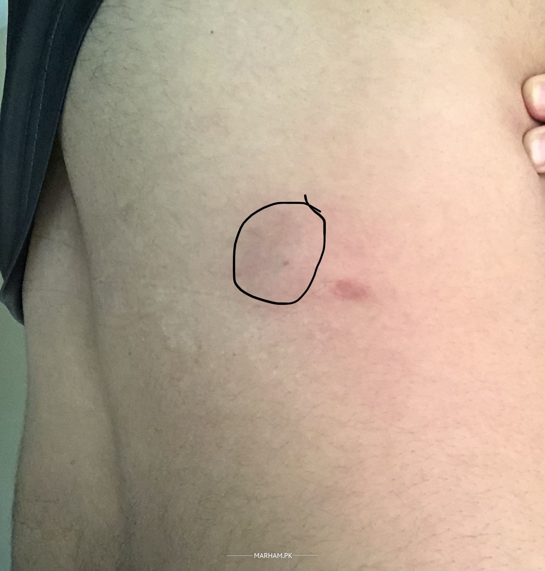 Hi, there is a lipoma kind of thing above my waistline on right side. Its on the back side of my body. It's there from a long time but it was tiny and not painful at all. Now, it's painful. It's under the skin, means you cannot see or feel unless you touch it. A tiny area surrounding it also in pain. There is a red scar as well just next to lipoma but I have never got any wound at that place so don't know why its there as well. The size of lipmoa is approximately 1 inch or less but I'm concerned about the pain which started 3 days ago. I'm attaching the image as well for the reference and circles the lipoma as well. Thank you so much.