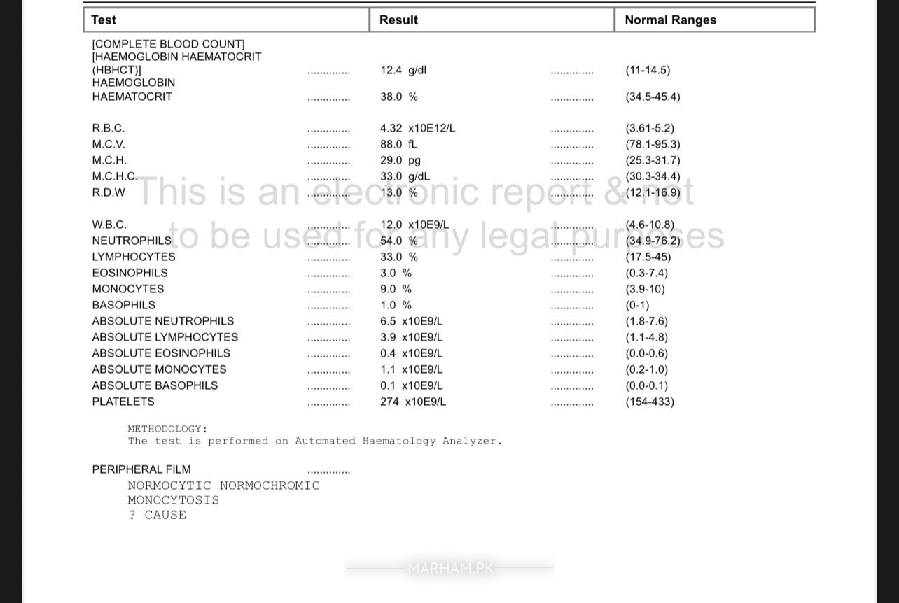 No fever only having flu today just did my blood test nd find monocytes increase what is the cause or should I go for further test or it will be settle by it’s own