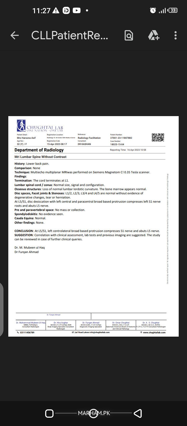 There is disc protrusion at L5 S1 level compressing S1 nerve and abutting against LV5.