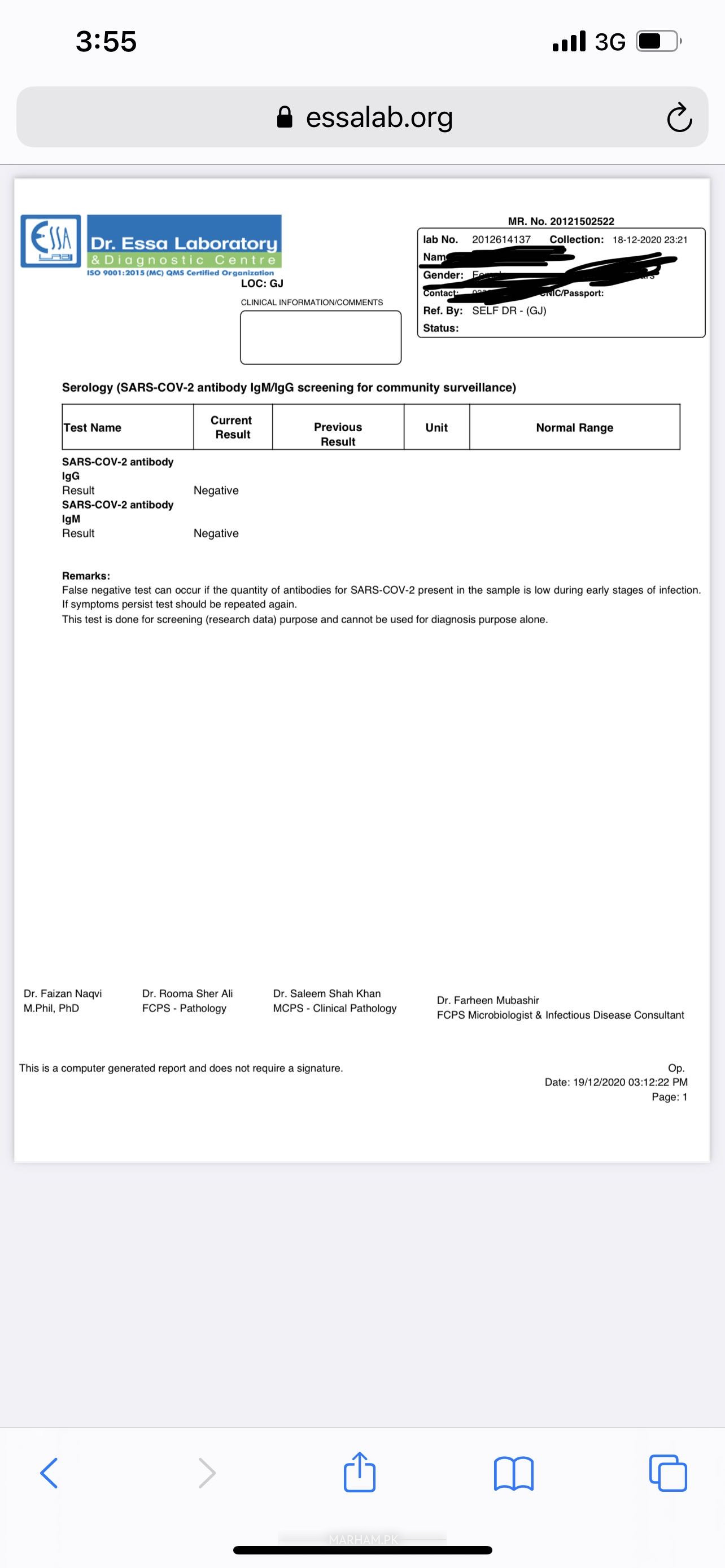 Negative report of antibodies is not confirmation of state of covid. you have to have covid 19 pcr nasal swab report for that.