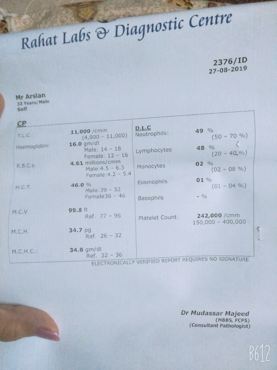 aik test reh gaya wo bhi kara lain agar karachi mein hain to clinic pay a jaain Vi D and thyroid profile kara lain reports mail ker dain