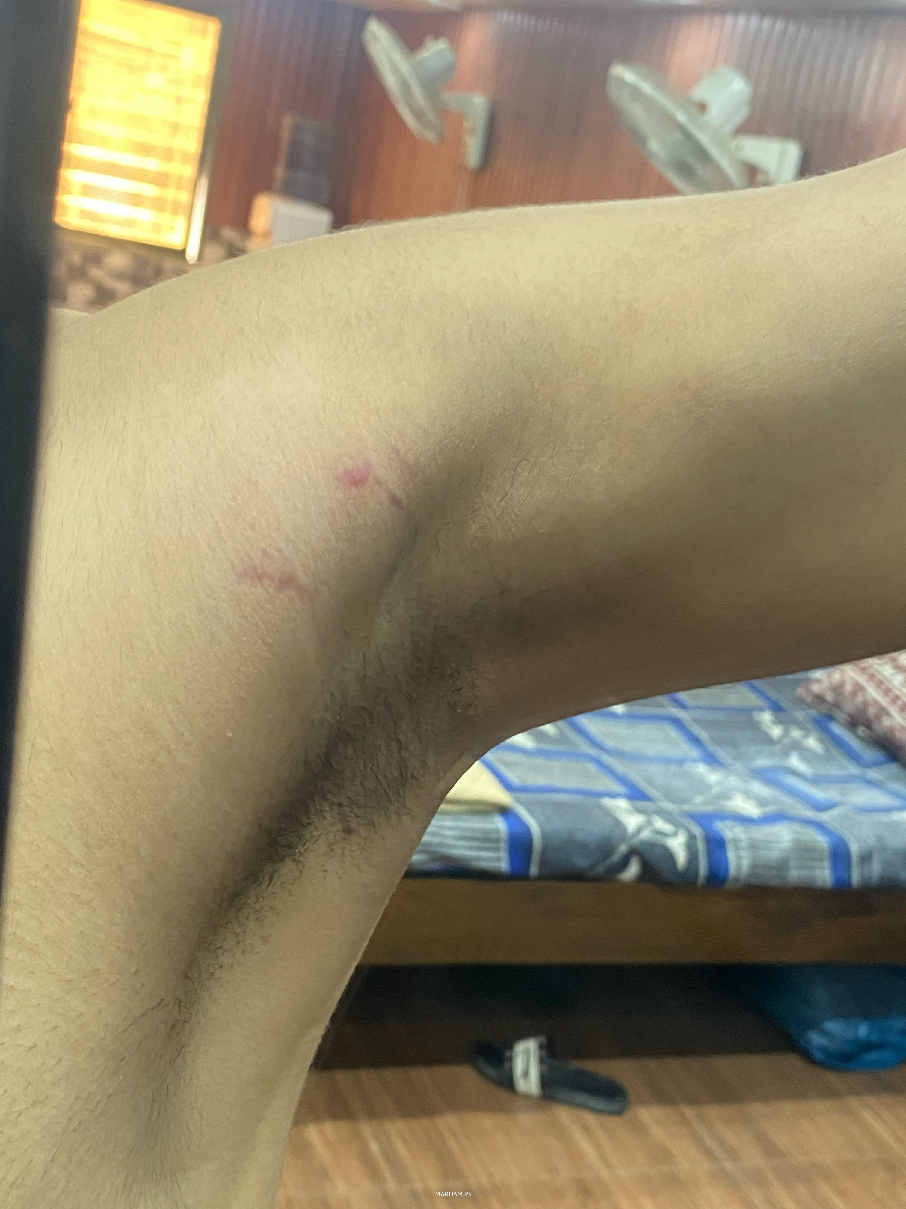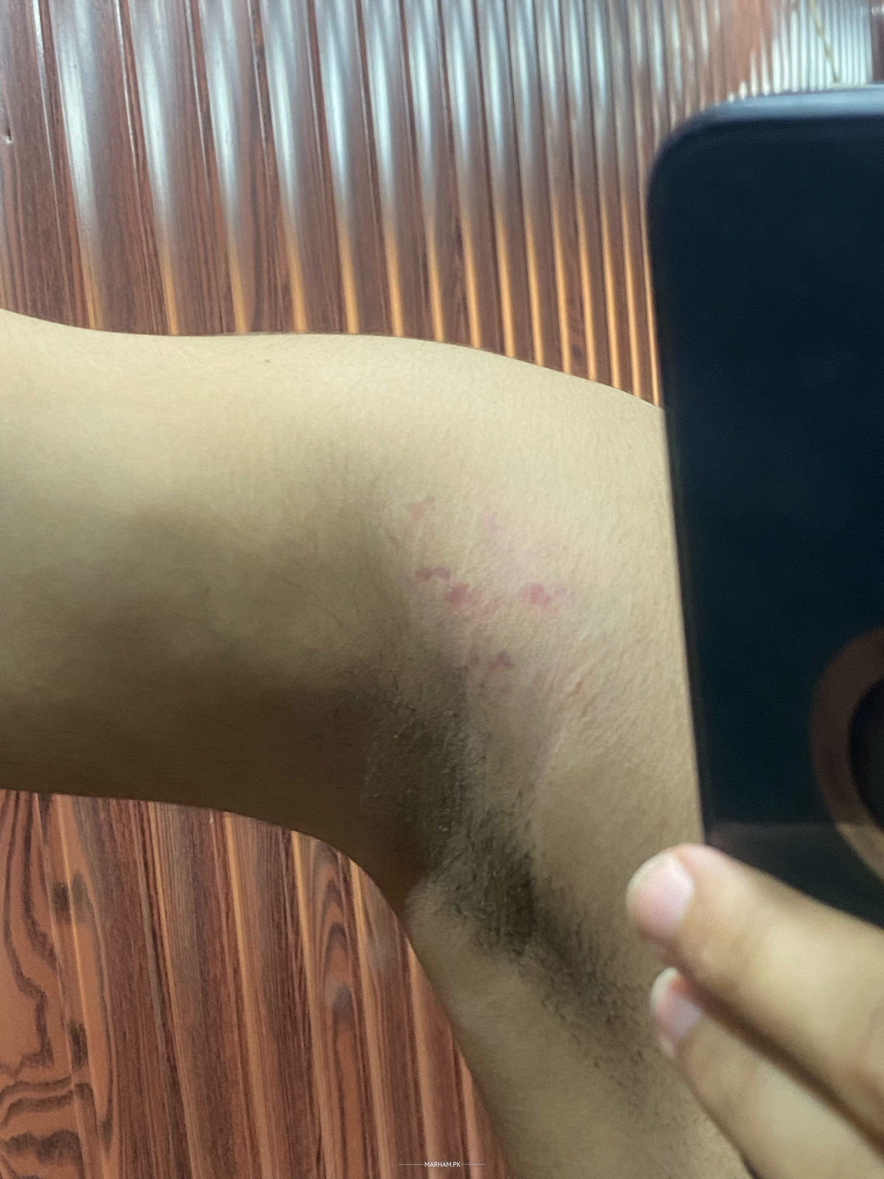 I noticed some strange red dots between my shoulder and armpits they are painless and having no itching or anything just red marks and i am also going gym regularly so is it the reason for these marks