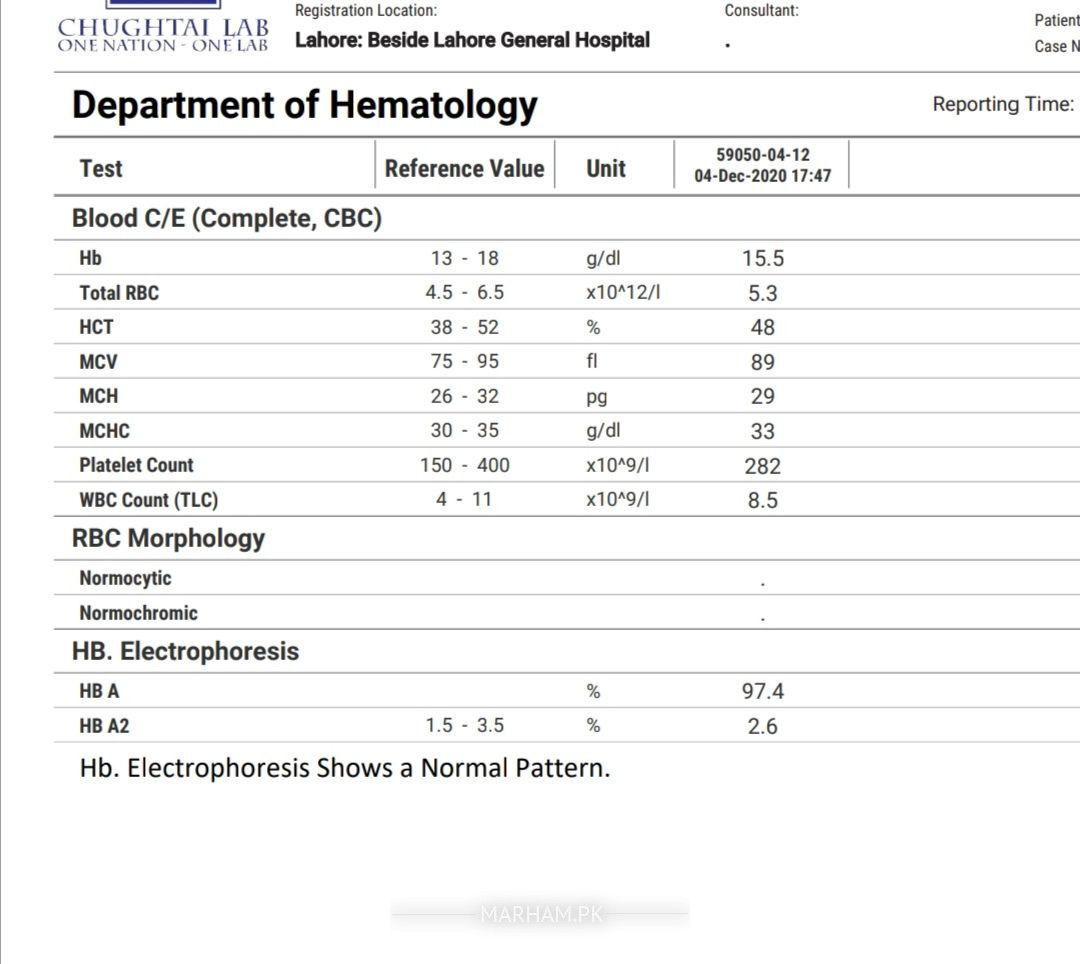 is this normal report.. i want to know there is any beta thalassemia or abnormality shows in this report pls reply regarding beta thalassemia