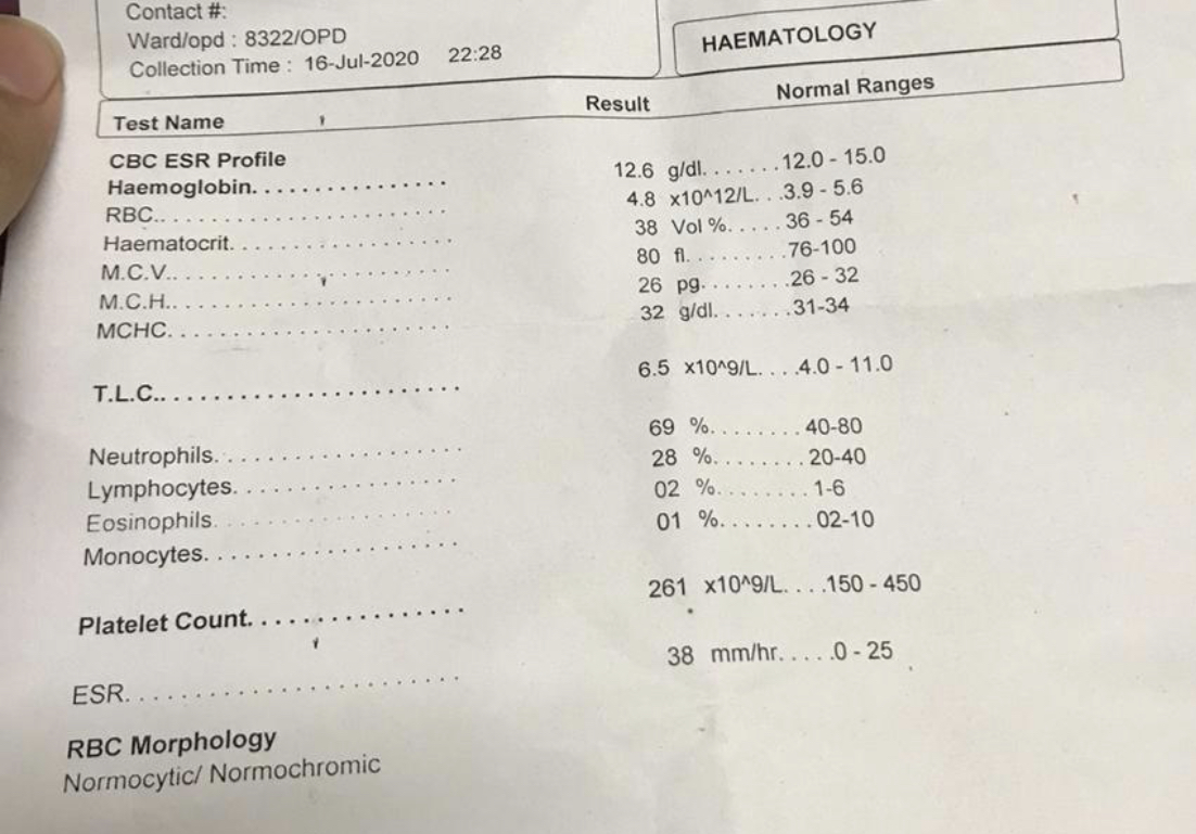 Patient is having high level of inflammation in her body and this needs immediate attention.... For proper treatment of your disease u can contact me through marham...