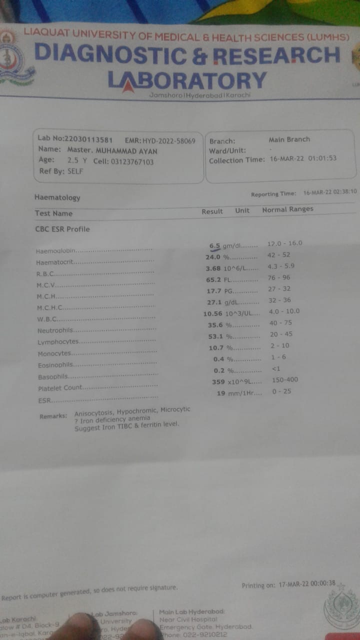 Asking for Other, Male, 3 years old, Hyderabad, Sindh