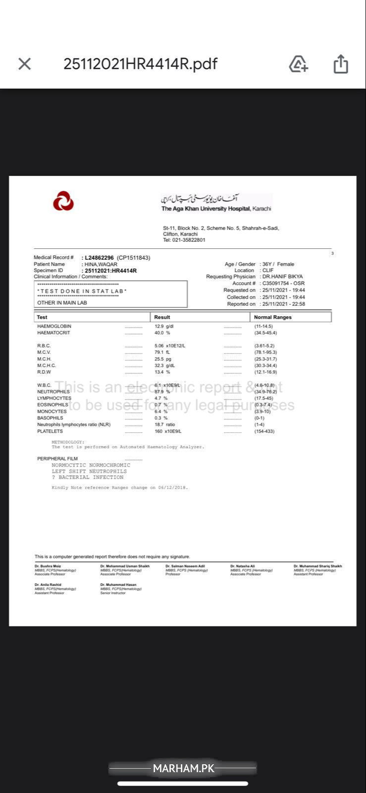 cbc. again test urgen. Dr. col. waqar