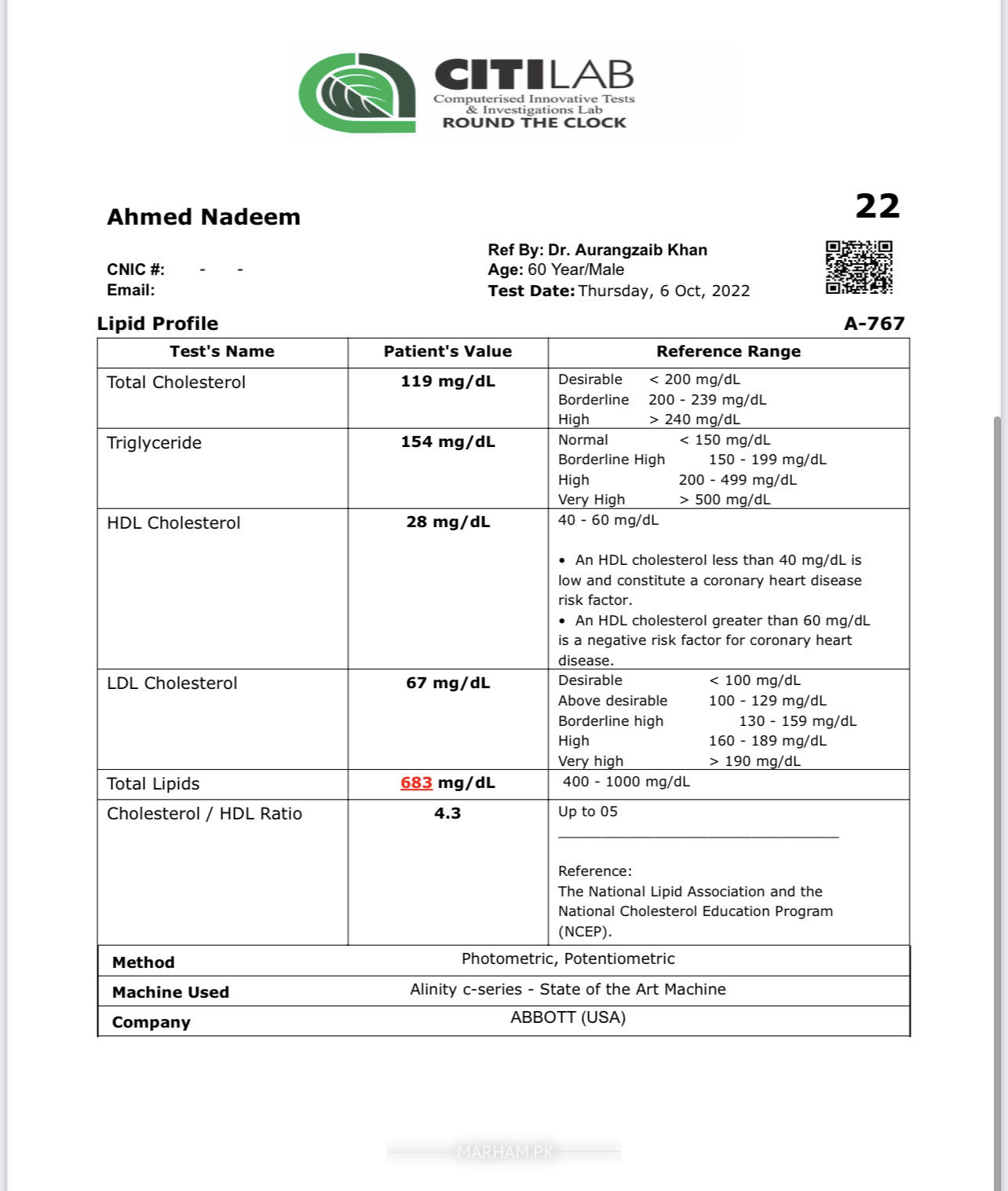 Asking For Someone else, Father, Male, 60 Years old, Islamabad