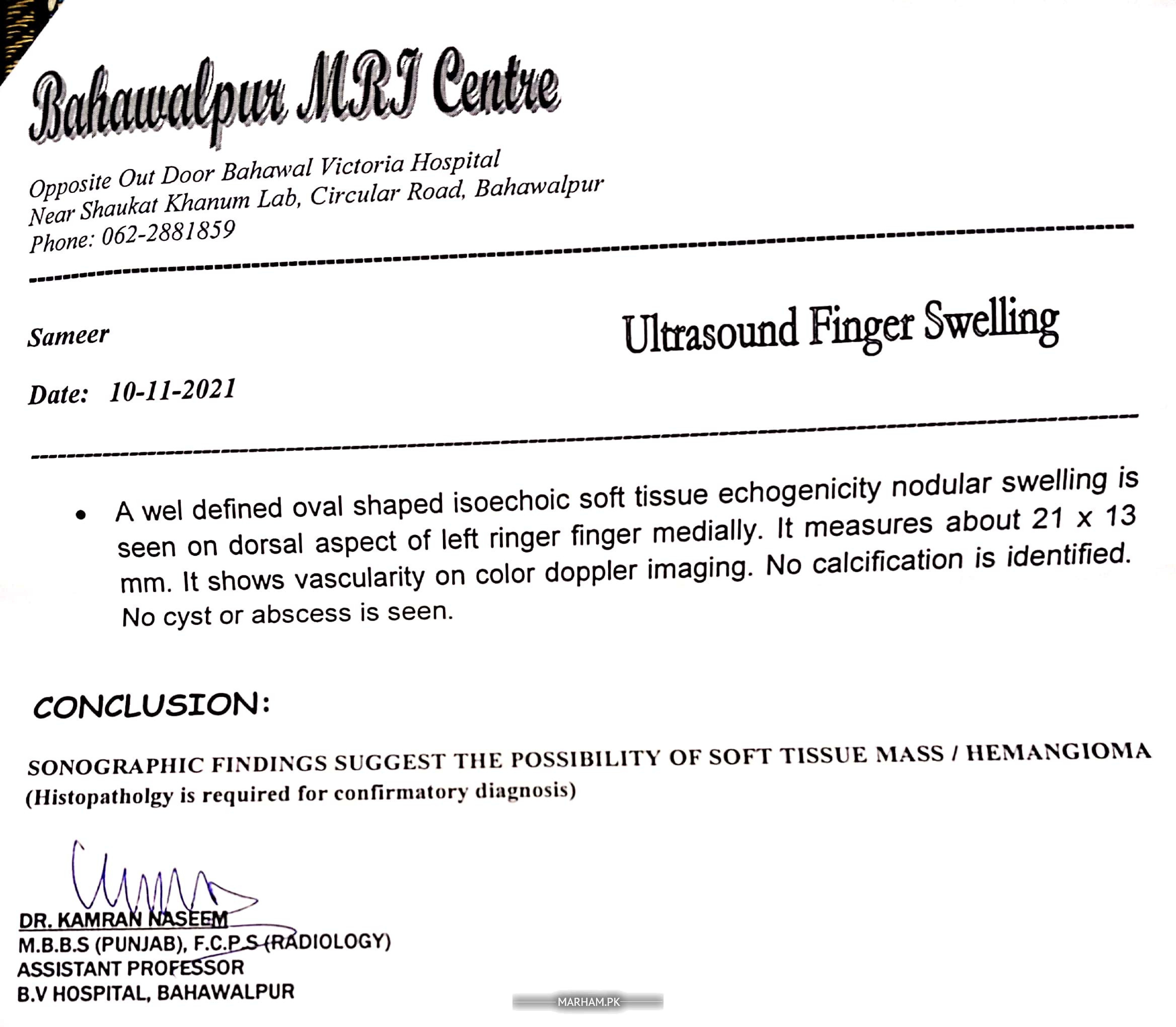 get ULTRASOUND OF THIS SWELLING IF NOT VASCULAR GET BIOPSY FROM SURGEON