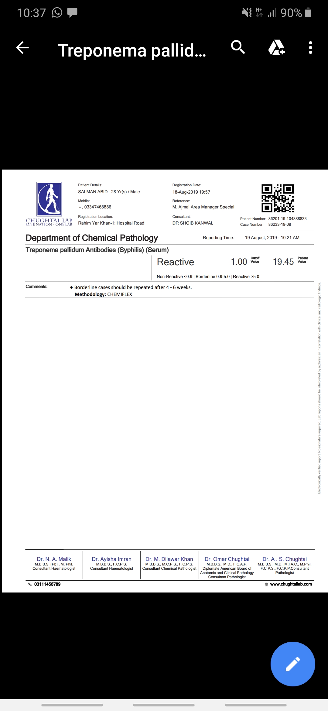 Sir my Vdrl is positive and TPHA is 18. Reactive. Got 2.4m ig benzathine penciline now how time need to get vdrl positive