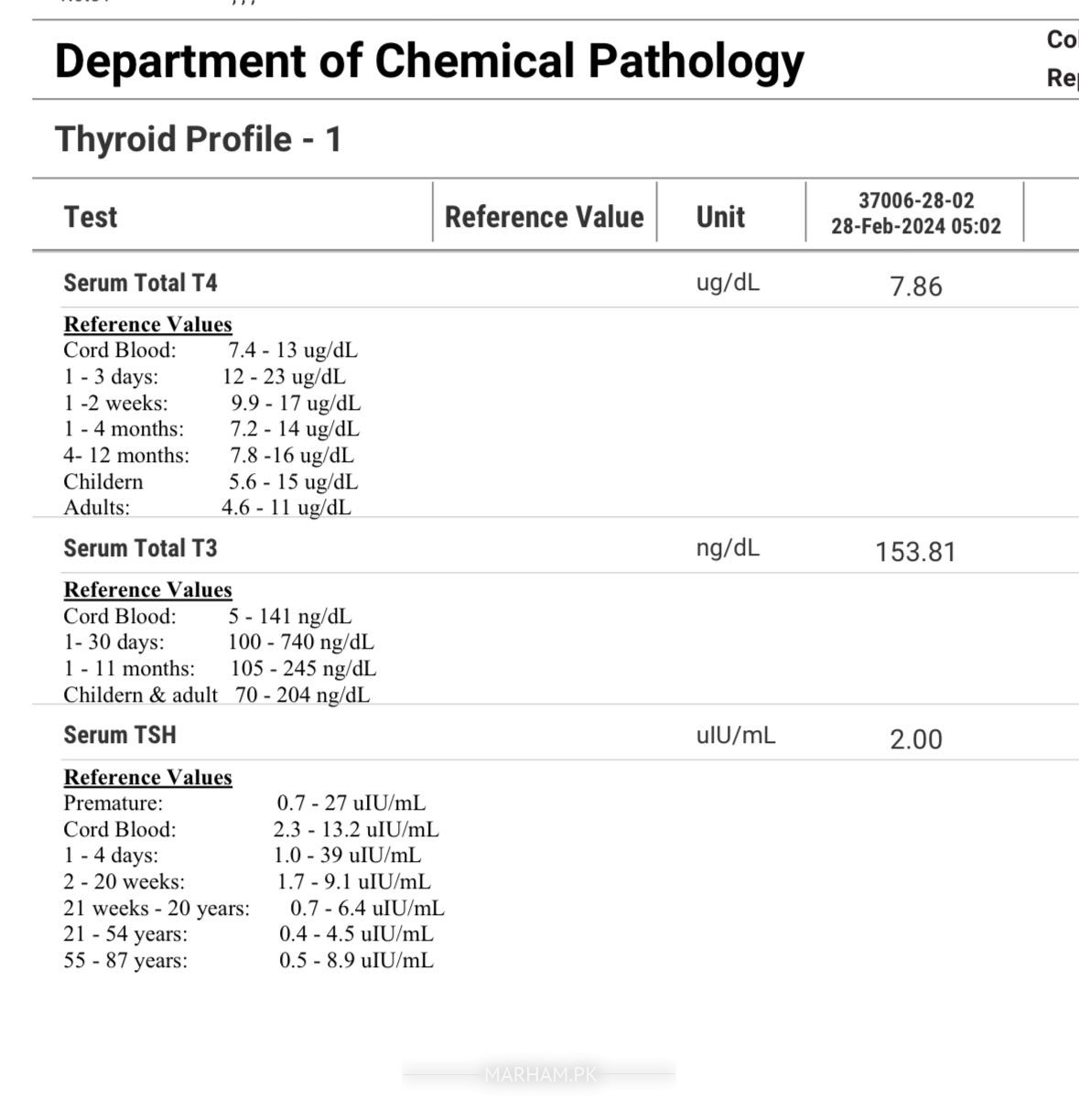I want to ask experts is my thyroid test normal. ? Because i am lossing muscles all around my body and feeling week , my report is attached below