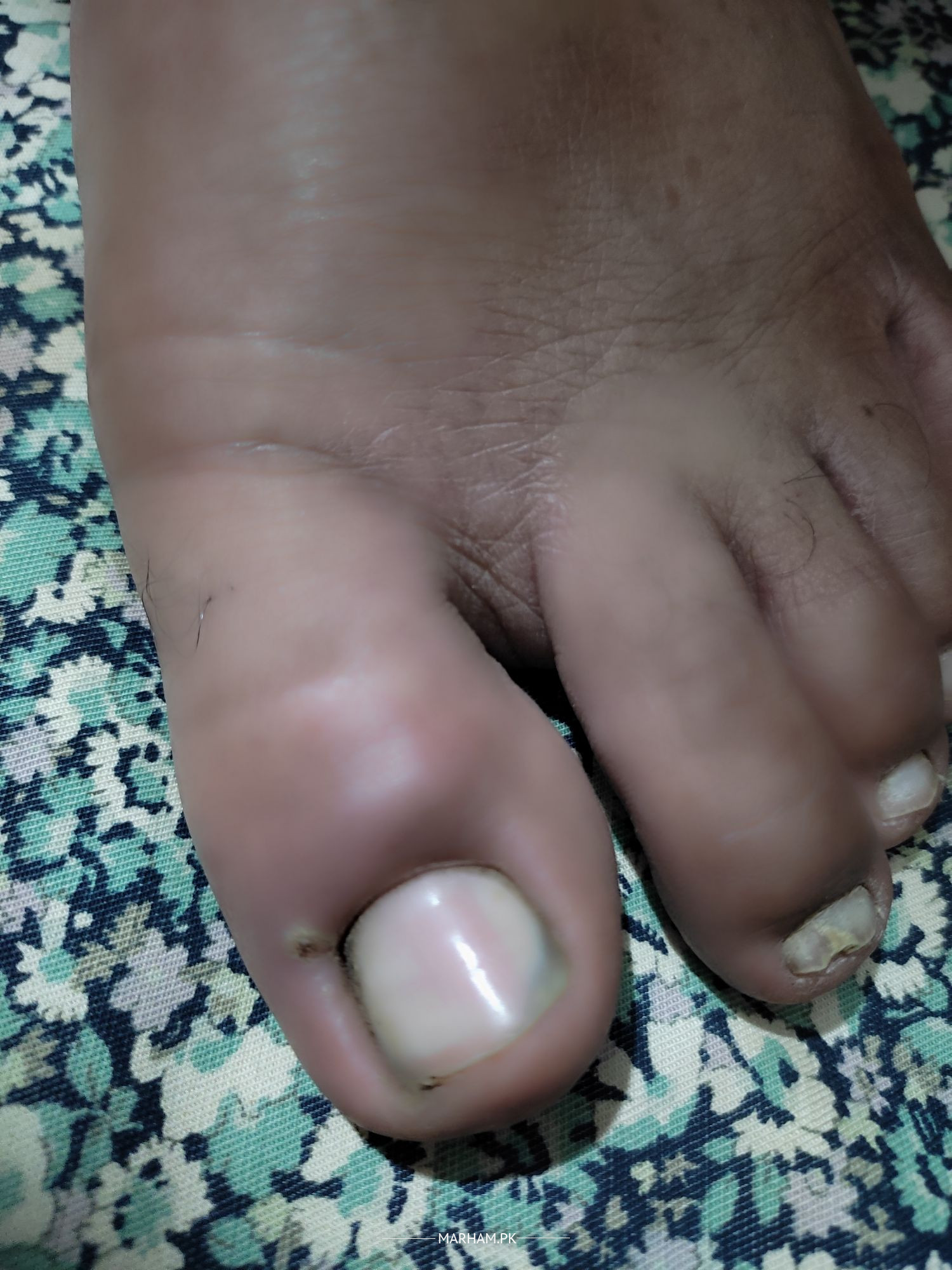 Aap ke walid sahab ko toenail infection hai jis ke liye unka nakhoon jald se jald nikalna hoga, warna infection poori paon mein ya jism mein khoon ke zarye bhi phail sakta hai.