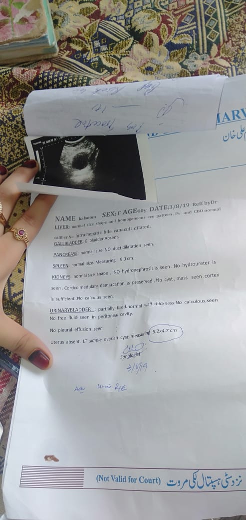 aoa just saw ur mothers side ovary main cyst Hy jabhi he pain ho Raha Hy koi or alamat hn??? koi fever ke history ???