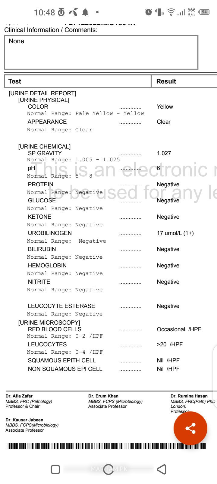 i have urine dripping problem. after passing urine few drops come out after few mints. doctor advised to have urine D/R test. can anyone please see report and advise.