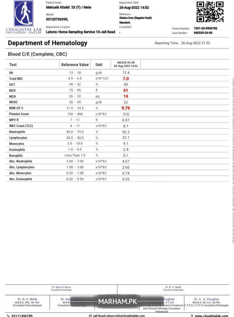 Sir, I have done with CBC in September Report seems to be fine