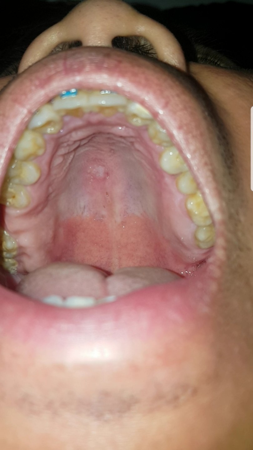 Thats the only one on the top. Happens after when I ate. Before I posted here also about my right cheek has 2 or 3 white spots, and then some small bumps under my tongue. They are painless.