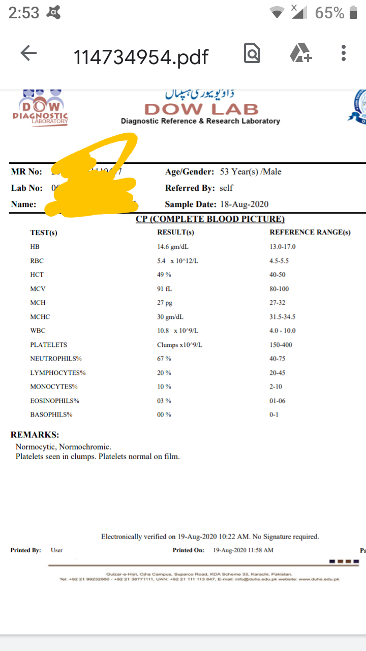 Repeat CBC as it seems lab error