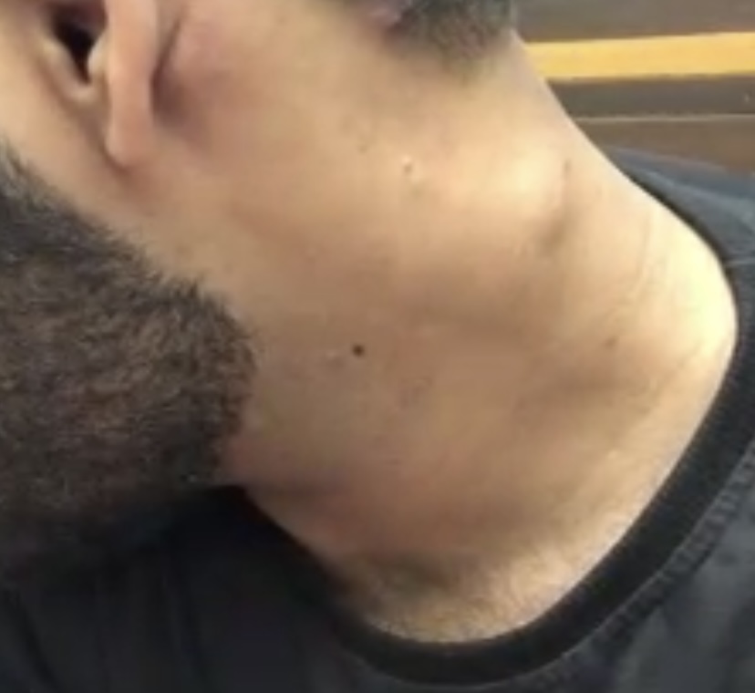 there is this hard immovable lump on neck, that he doesnt remember having it before, its asymptomatic and without any pain or inflammation, its more visible when head is turned to the side, what to do with it, is it normal? quite concerned