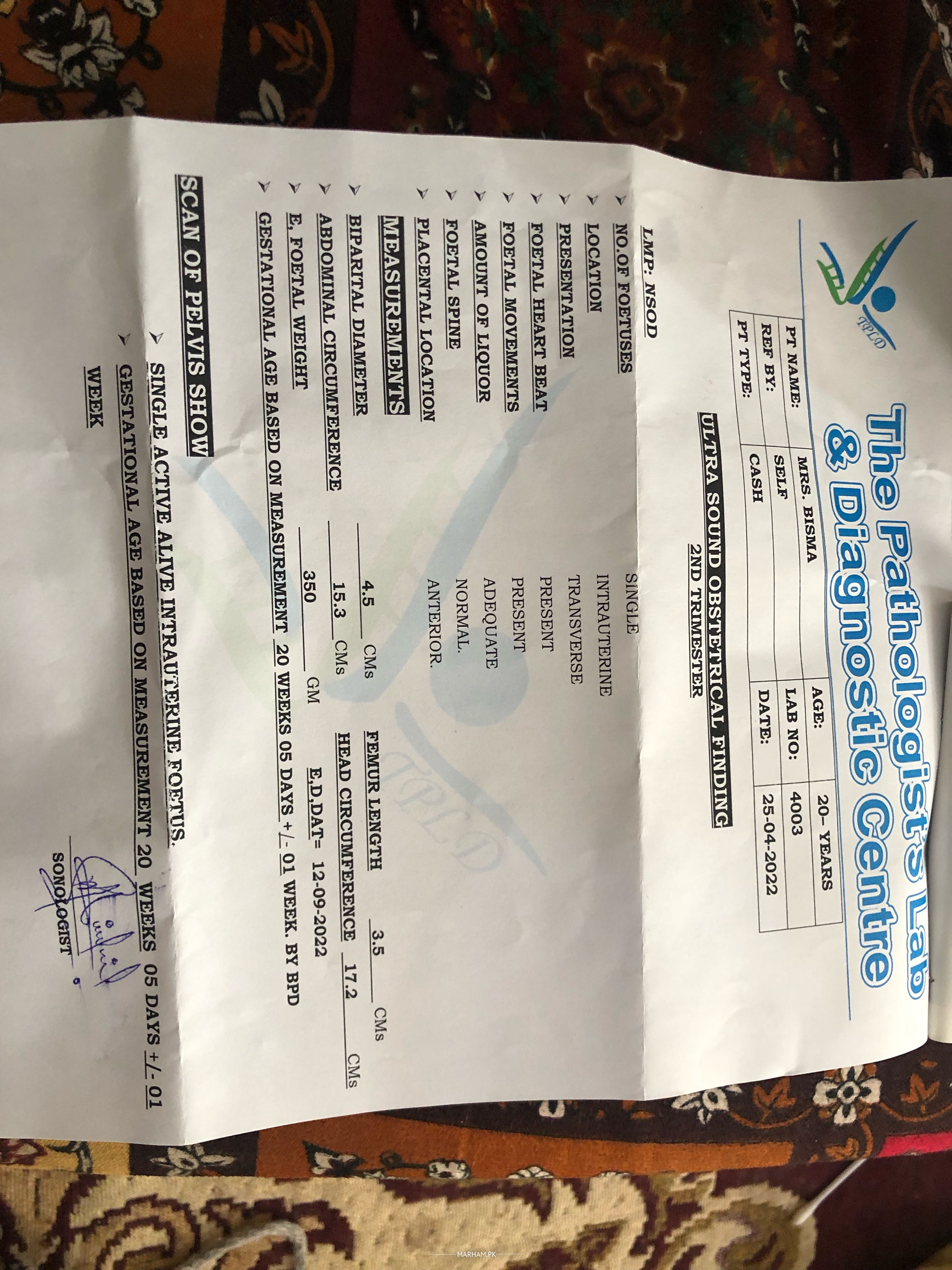 first baby ,and 20 weeks and previous scan normal .