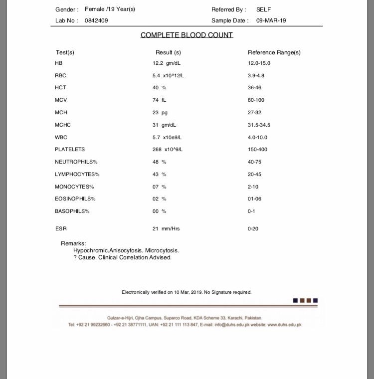 Thanks you have premenstural syndrome excessive blood clots can cause aneamia nd continue iron your report is ok