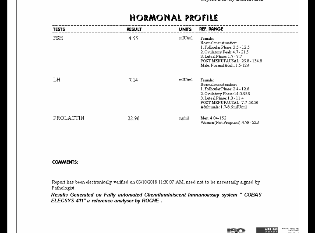 I m going through fertility treatment, doc asked me to give some tests which are blood cp and harmones test on second day of periods, kindly tell me are these reports okay, thanks