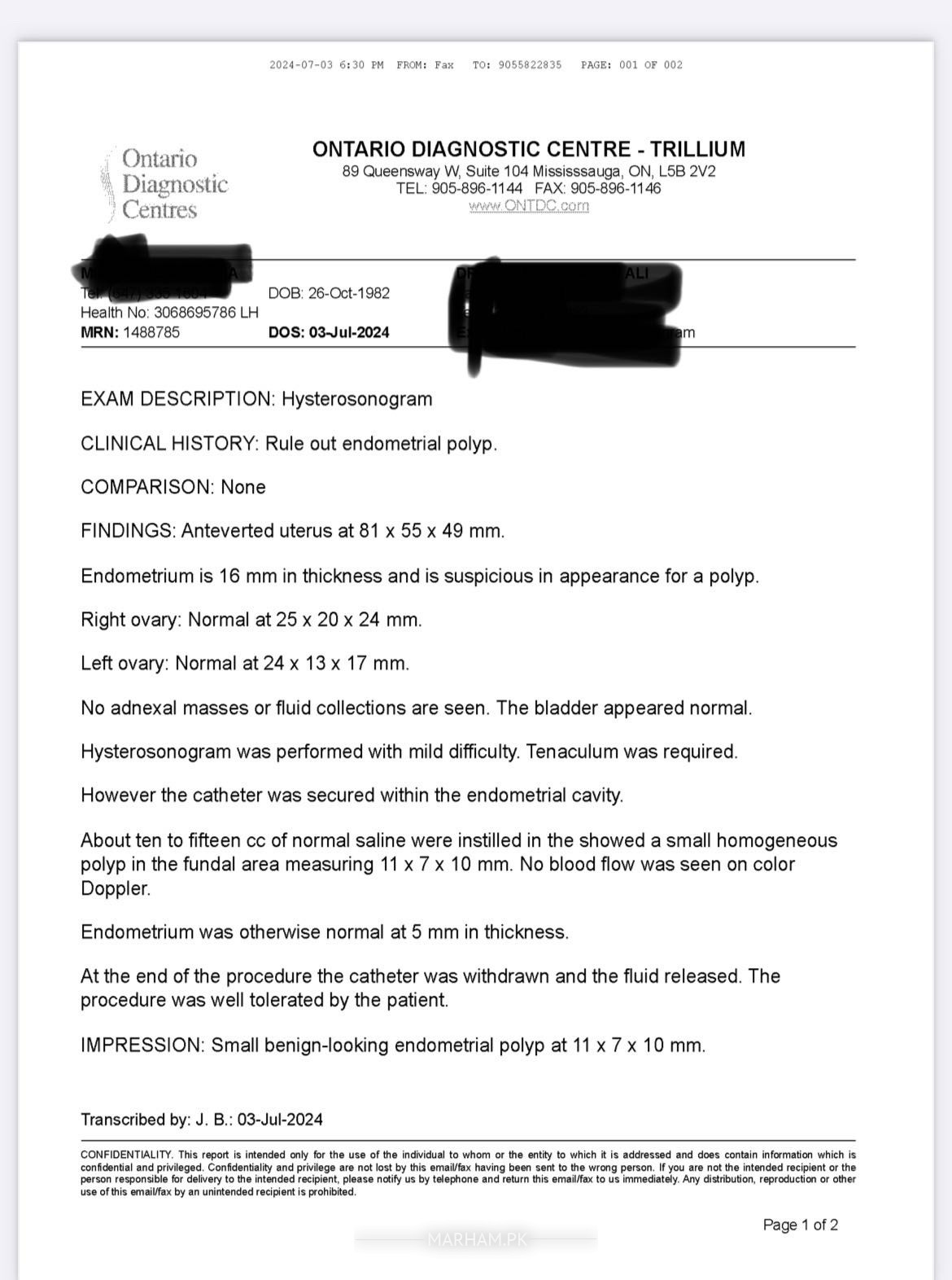 Endometrial polyp, has slightly impacted menstrual cycle by shortening it to 27/28 days. Heavy bleeding on day 1 of periods then normal. no pain. no other symptoms. Advised by doctor to get the polyp removed and for biopsy. is this recommended course of action?