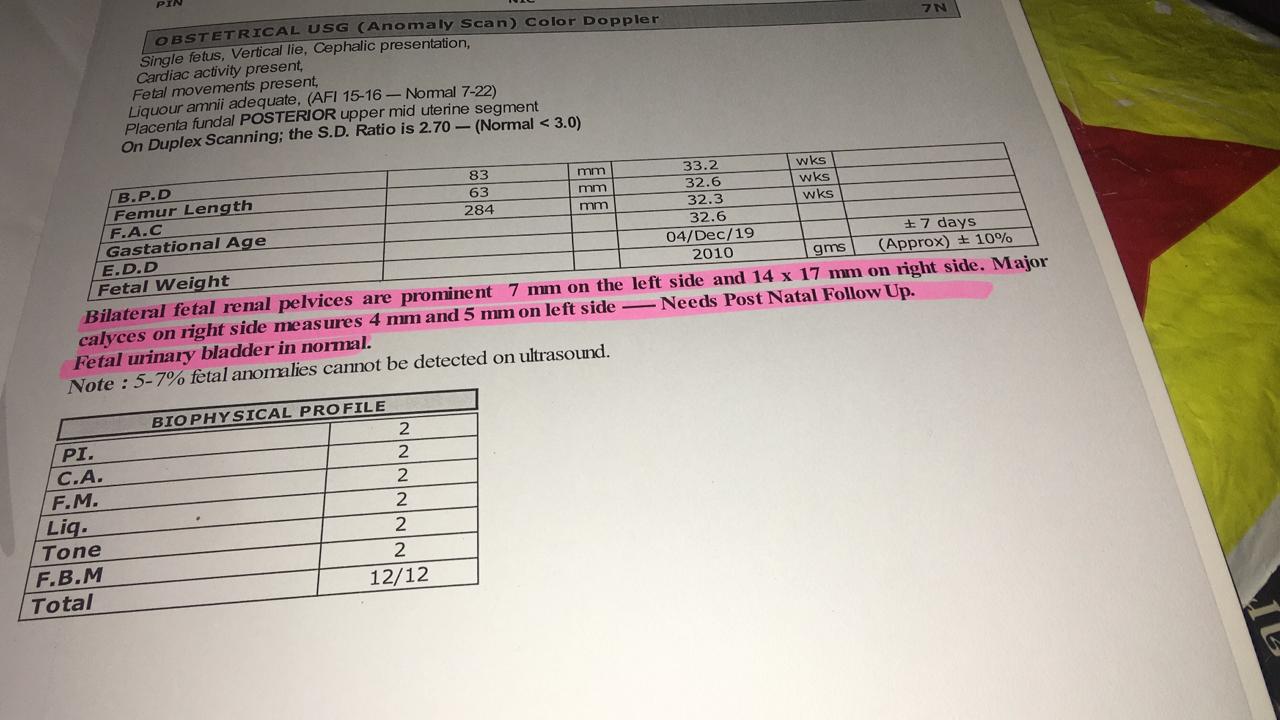 Mera pregnancy ka 8 month chl ra h is month k scan ma mery baby ki kidney ma kch issue ayaa h jis ki waja se meri dr ne muje kaha h wo mera case ni kry ge k bachy ko birth p nursery ki zarurat ho ge or hmary hospital ma nursery ki itni achi facilities nii hain. Kindly meri report dekh k muje btaen baby ko kis type ka issue h kya ye issue bhttt serious h or is ka treatment possible h before birth or agr ni tw after birth iska kya treatment ho ga. Ma bhtt pareshan hn Q k last k month ma koi dr case ni leta kindly please help me out baby ko foran after delivery nursery ki zarurat ho ge ??