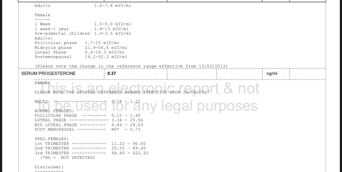 These tests including progesterone was done on day 10th. Ultrasound was done on the 11th.