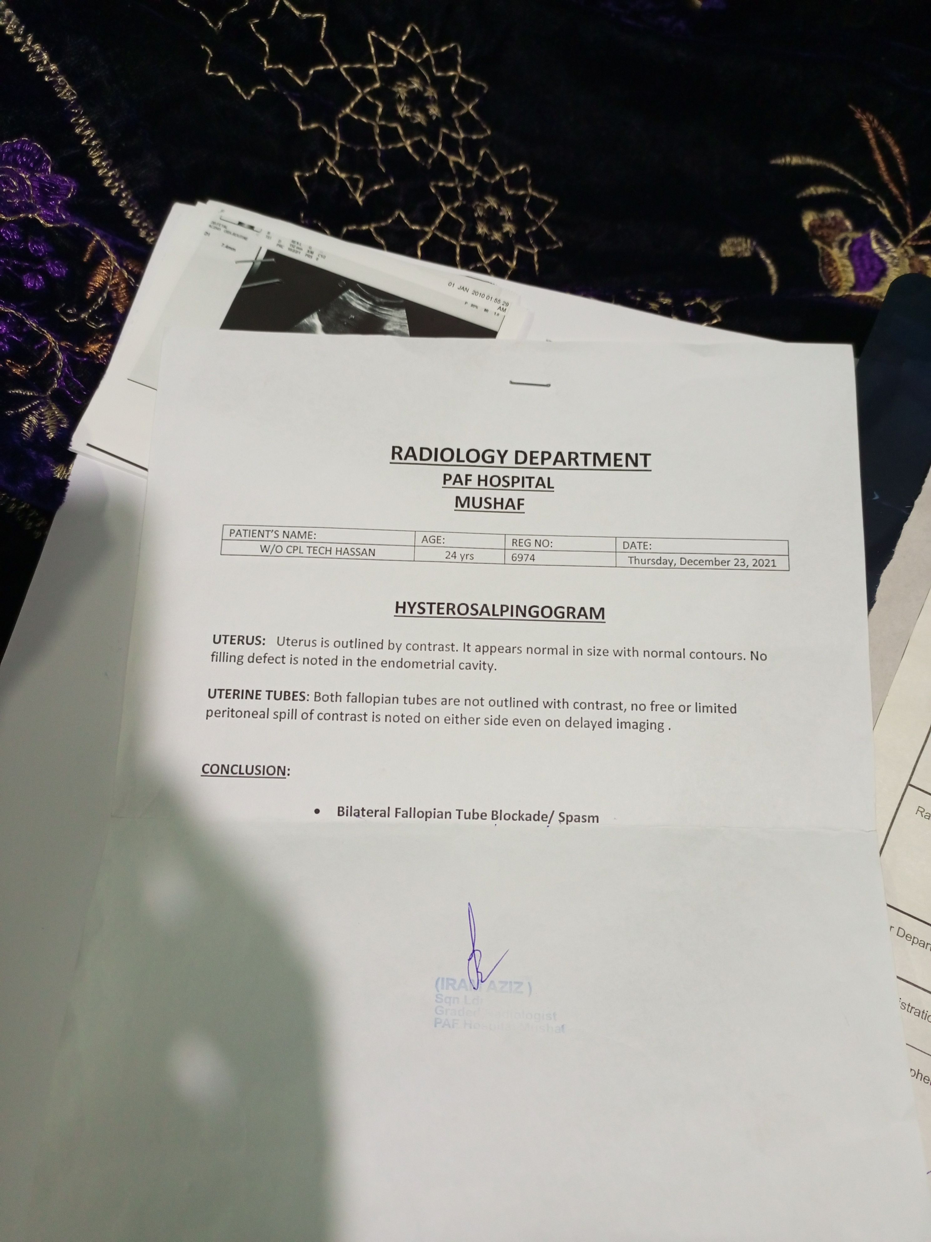 Ultrasound krwaya tha usi ma bataya k reham ma sozish ha jis sa hamal ni ho raha aur ma HSG krwa chuki hn report and krti hn