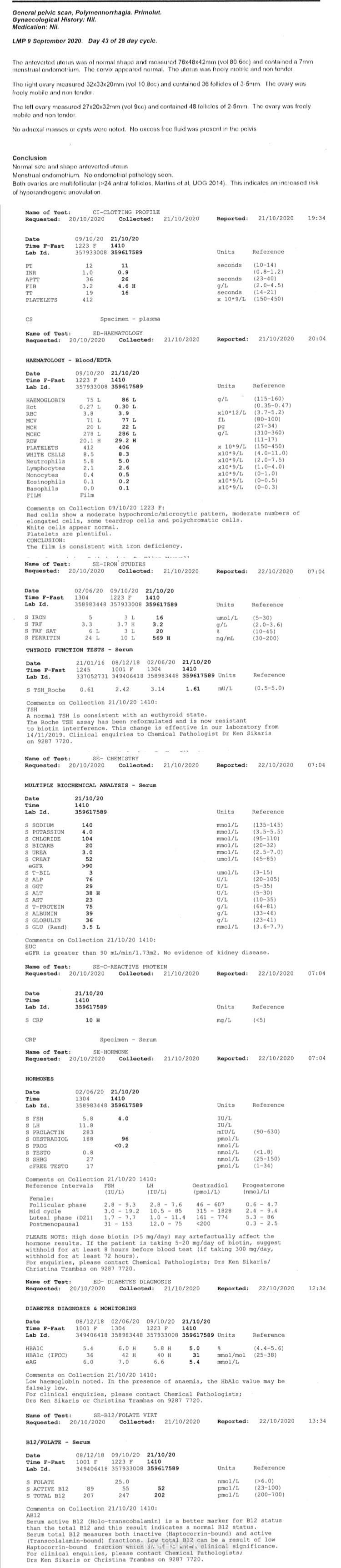 In dec 2018 i was diagnosed with post natal depression and started anti-depressants, since feb 2019 i am having vwry prolonged heavy periods ( bleeding goes on for month or two months).doctors started with tranexamic acid( didn’t work). Primolut( stopped the bleeding but not a solution) then Mirena( it fell off and didn’t work). Now from 9th September2020 I’m still bleeding. Bleeding stops only if I take primolut. Wanting to have another child but don’t know how and what to do. Gynae said there’s nothing more they can do. Been to couple of doctors but no one knows what’s going on and how to treat it. Attached are my latest reports. The bleeding has clots in it and watery consistency, easily soak a pad in an hour. Got iron infusion twice as blood level was really low and ended up in the someone can guide me in the right direction. Over this time i have gained more than 10kgs due to medication.