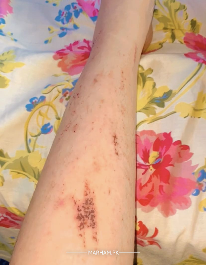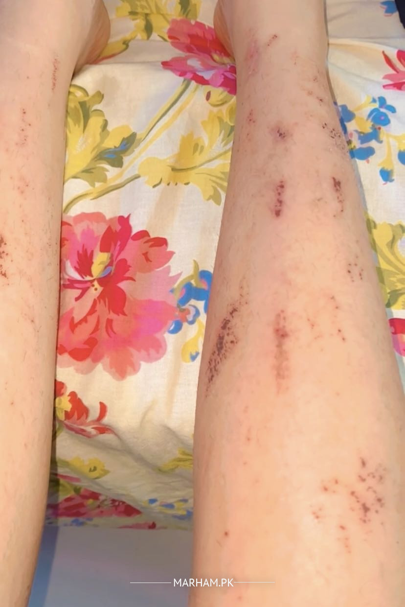 I’m 7 months pregnant and having a lot of itching on my body, mostly on my legs and hands. Because of this, I have marks all over these areas. I consulted my doctor, and she gave me a medicine called Rigix and a lotion named Blisscal calamine lotion. I have finished the 5-day course and the lotion is also finished, but the itching is still there and getting worse. Old marks are drying, but I’m getting new ones now. What should I do? Please guide me. I have attached pictures below.