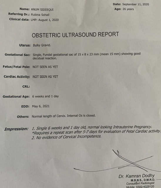 Assalam o alikum It's fine. You can follow your doctor advice and repeat scan after 1 week for confirmation of heartbeat.
