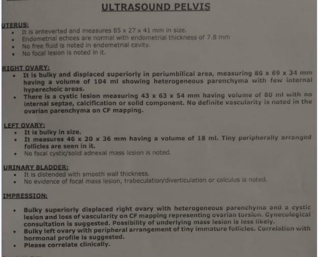 She should attend gynaecologist.. Attending doctor will make the decision.. But on the basis of report surgery is recommended.