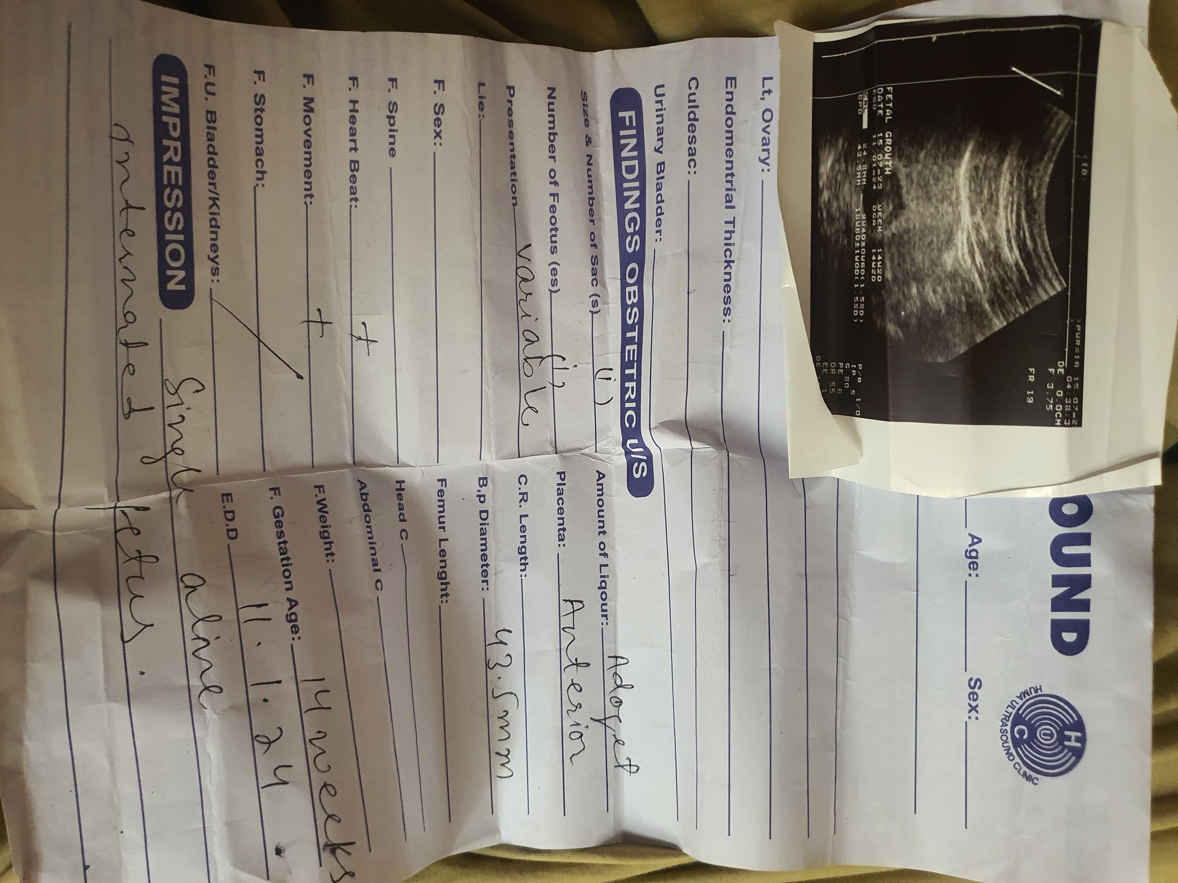 Respected Dr Performed The Ultra sound according To the Dr everything is fine.