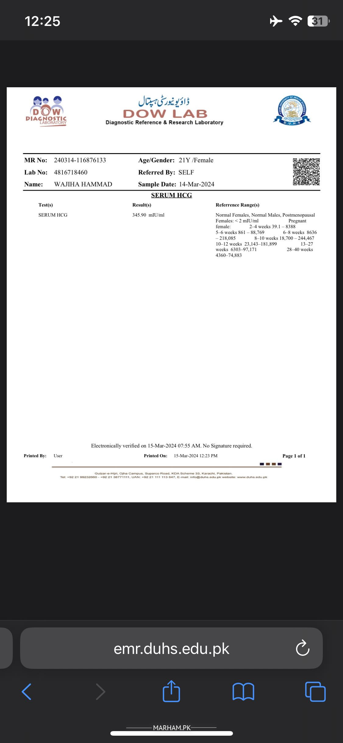 Is result k according you are pregnant. But pain is not a good sign. Kindly apni history dain. Phle kitny bchay hain? Koi bcha zaya (miscarriage) hua ho? It’s very important to answer these questions. Takay treatment start kr sken jald se jald