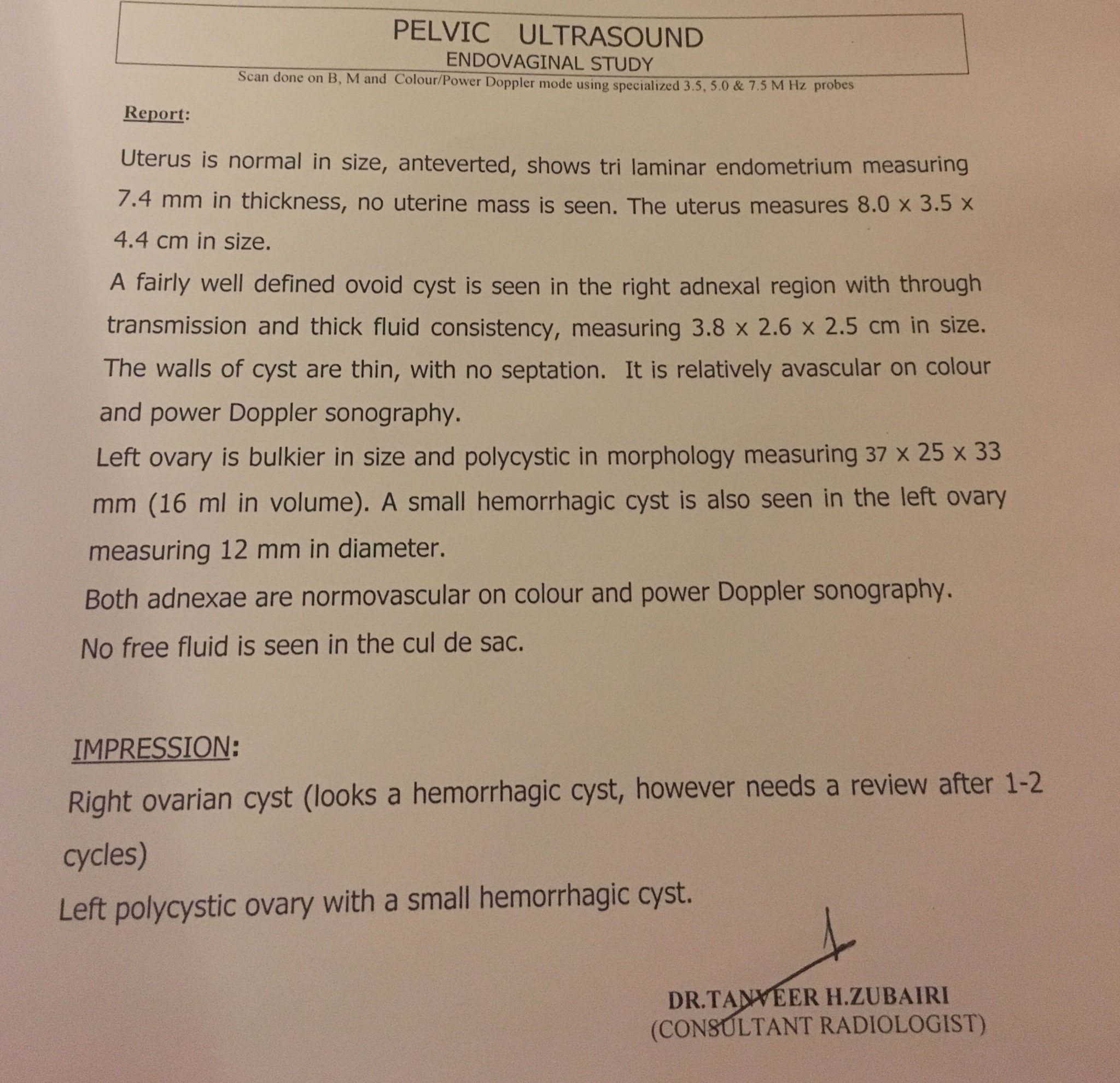 You have cysts in your ovaries, so repeat your USG after 2 -3 months.