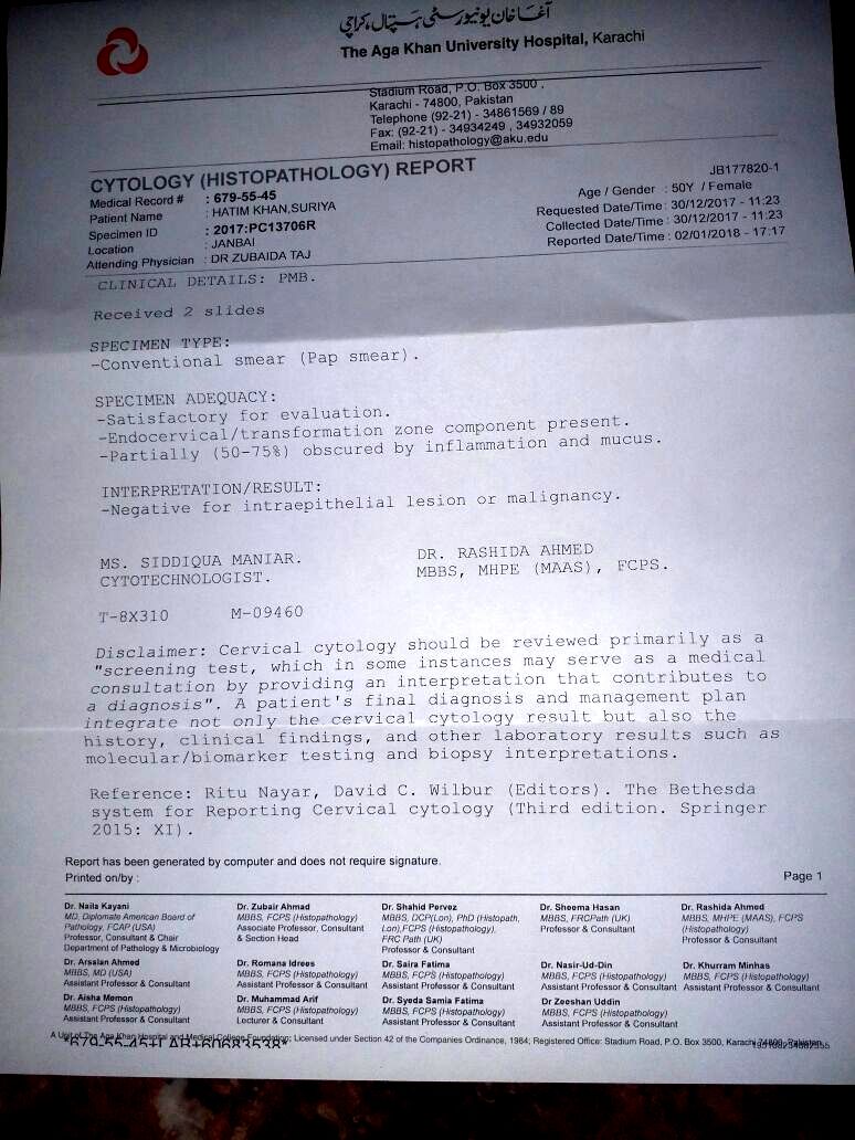 my mother having post-menopausal-bleeding since six months ago detail reports are attached ca 125 and paps smear test are normal but bleeding still given postan fort,cepspam and transamin for 10 days please advice what to do?